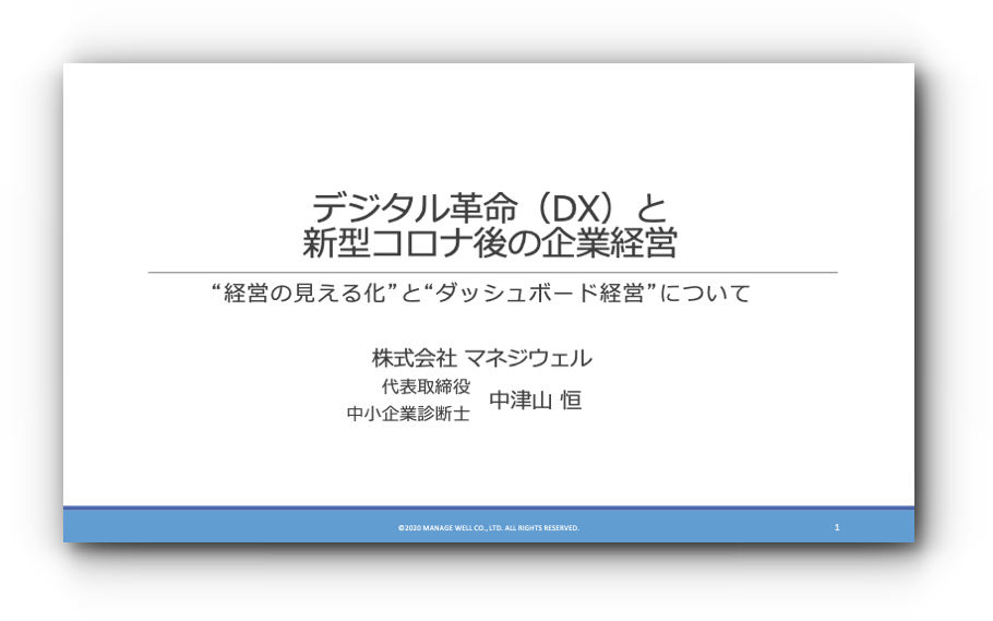デジタル革命(DX)と新型コロナ後の企業経営~“経営の見える化”と“ダッシュボード経営”について